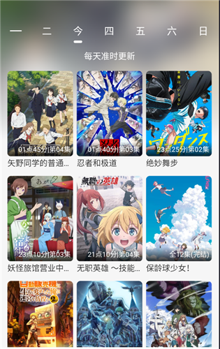 3、软件设有专门的日期排版,每日更新最新的动漫资源,确保用户能够第一时间观看到最新的动漫内容。