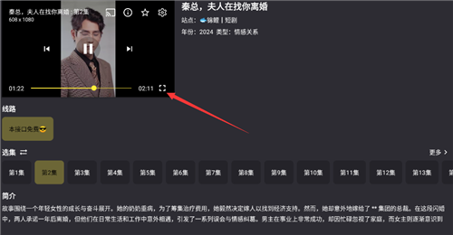 4、最后点击箭头指示处的窗口就可以全屏观看。