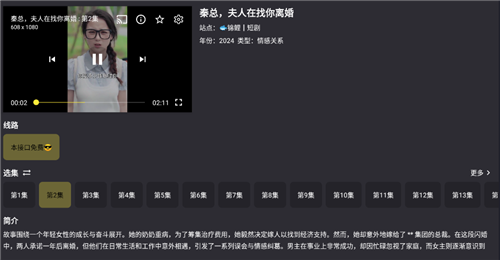1、打开软件就能看见主界面呈现的精彩影片2、来到作品详情界面可了解作品简介和选择剧集播放