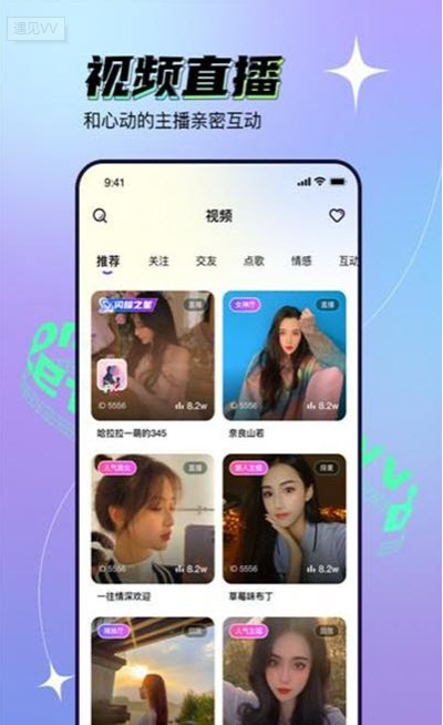 遇见VV是一款可以快速匹配好友进行视频聊天的软件,这里会有很多精彩的玩法帮助你快速脱单,还有直播内容可以打发时间,找到更多趣味相投的好友,不断扩大你的交友圈,感兴趣的可以直接下载体验~