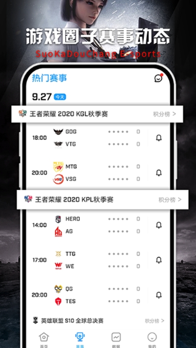 事即时数据游戏平台。梭咖斗场电竞app提供游戏资讯阅读、比赛直播、赛事数据等功能,方便用户查看。