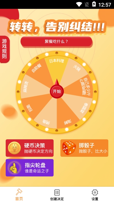 转盘设计挺漂亮的,界面简洁、有旋转音效和选中音效,除了不能模拟手动旋转转盘需要点击中间的按钮外,挺有趣的。用转盘来快速决定,帮助你轻松“治疗”选择困难症。