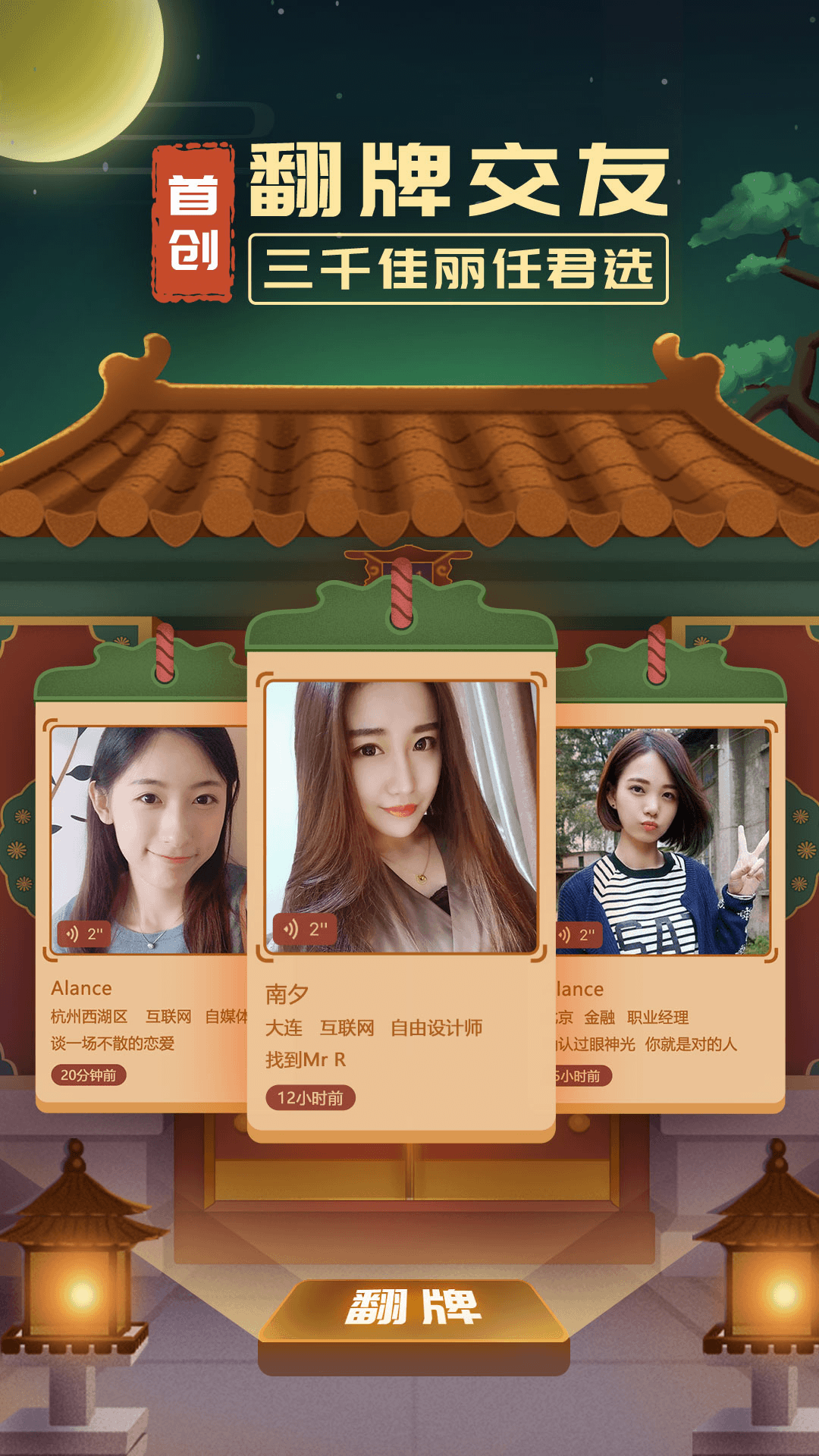 独创翻牌玩法,体验皇帝般的后宫翻牌选妃享受,社交从此不再是无聊的左滑右滑;