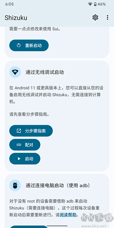 通过无线调试启动适用于 Android 11 或以上版本。这种启动方式无需连接电脑。由于系统限制,每次重新启动后都需要再次进行启动步骤。