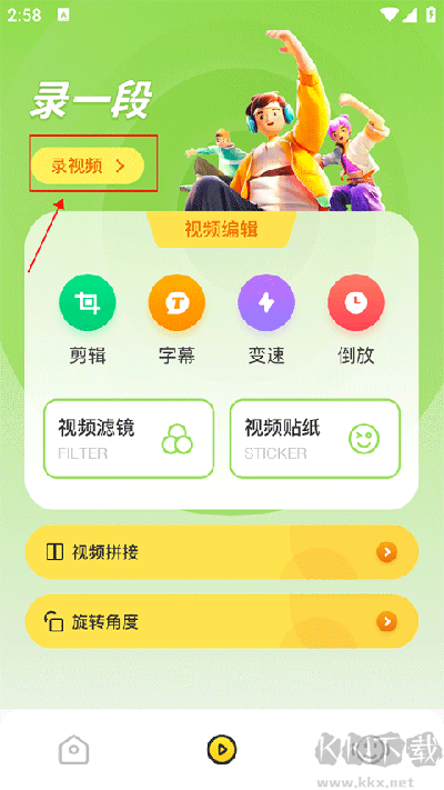 1、打开进入app,在录视频界面中点击上方的录视频;