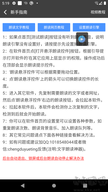 1、具备语音朗读功能,可将文字内容转化为语音播放,兼容包括讯飞语记在内的多种TTS发音模块与声音角色。