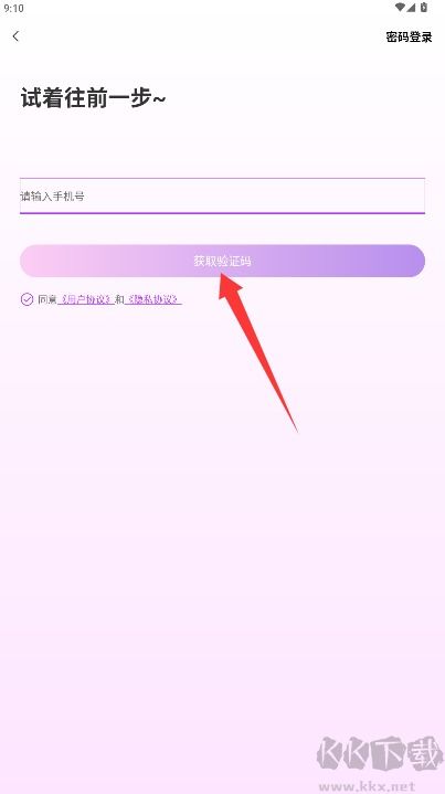 2、在登录界面输入手机号,勾选同意相关协议后点击获取验证码并输入完成登录。