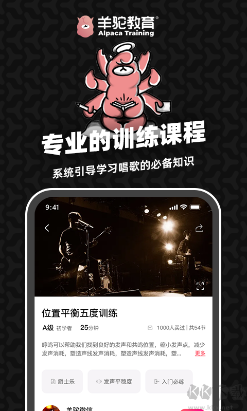 羊驼爱唱歌app是一款专业的声乐学习应用,不但能够提供百期免费歌唱课程,还融合了K歌速成与系统教学两大核心,包含每日练声、音准节奏训练等实用内容。用户可使用节拍器、简谱库等工具定制个人学习计划,通过专业测评了解自身水平。软件还有名师指导与热门歌曲解析帮助解决高音难、气息弱等常见问题,让每位使用者都能逐步提升演唱能力,享受歌唱乐趣。