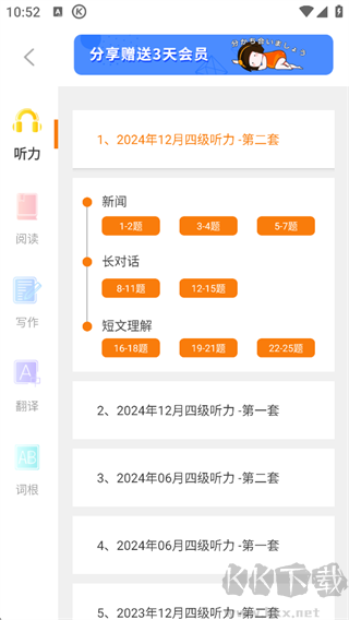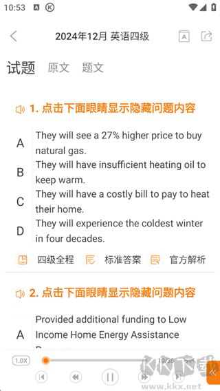 6、支持在线进行四级听力训练,可直接收听听力真题,有效提升听力能力。