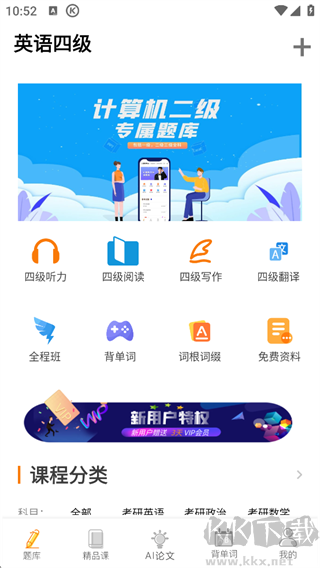 3、内置四级题库,汇集大量四级相关知识点,方便用户高效学习。