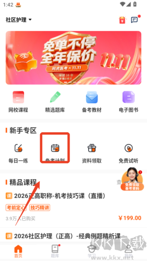 1、启动阿虎医考应用,首先在主页挑选需要备考的类别,例如执业医师或职称考试,进入相应学习界面。