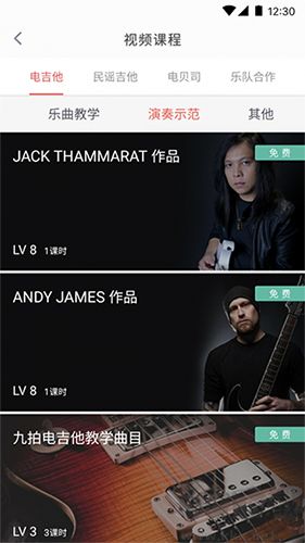 3.专业吉他课程随心选 App汇聚大量专业吉他学习课程,涵盖多种风格、多个难度等级,可根据自身兴趣偏好与学习需求,自主筛选心仪内容,开启个性化学习之旅。
