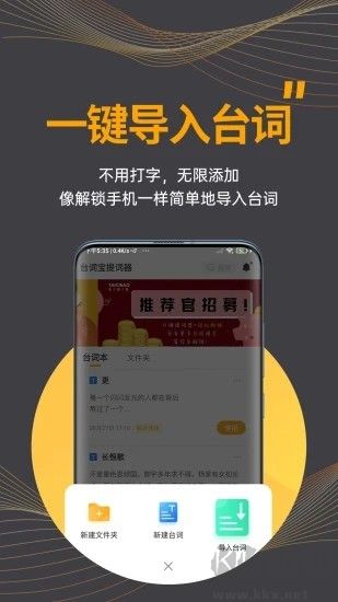 【文本导入快捷】台词内容过多时,手机输入不便,此功能允许一键从微信导入word或txt文件,省时省力;
