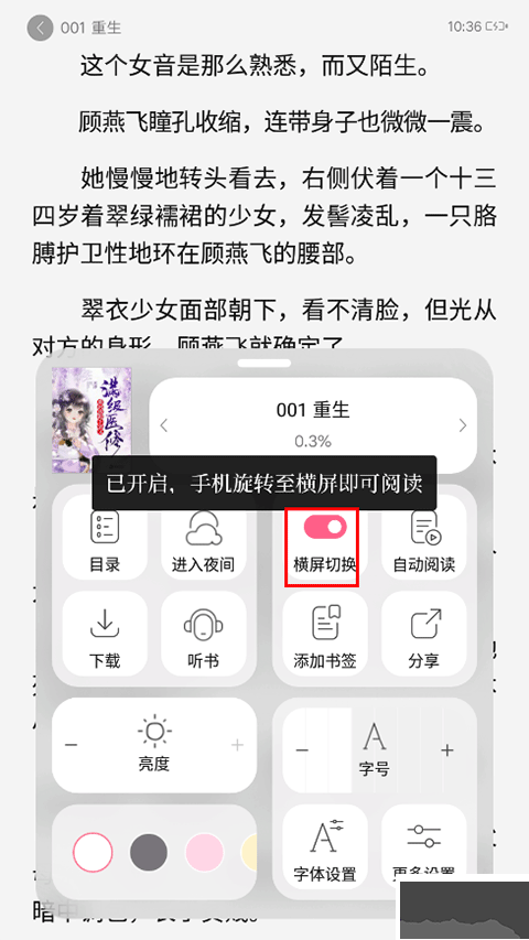 红袖读书怎么设置横屏?