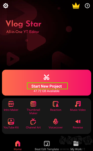 1、启动VlogStar应用,轻触【开启新项目】按钮以创建新项目。