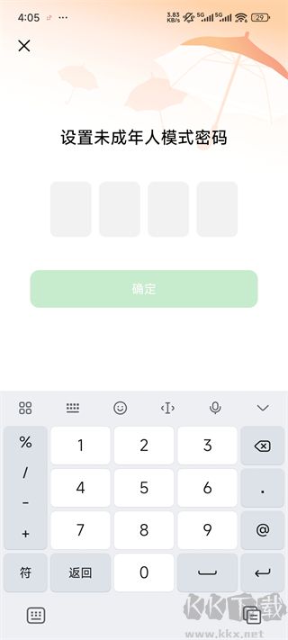 4、设置未成年人模式密码点击确定