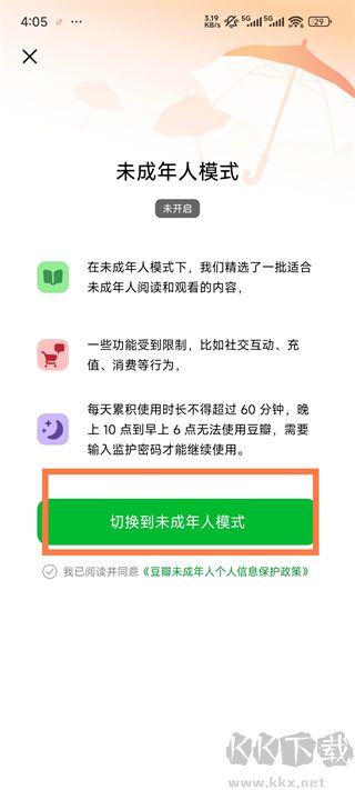 3、切换到未成年人模式