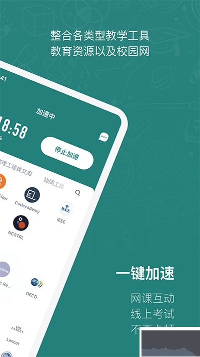 迅捷网络传输,飞速获取感受;线上课程无中断,声音图像同步传达;单键开启加速,影像、图文均稳定载入。