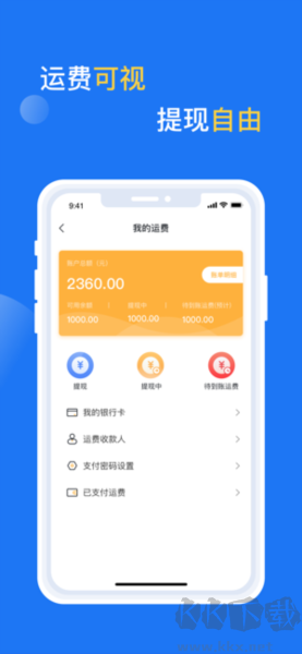 运费明细清晰可视化,可实时查看每笔订单的运费情况,做到心中有数;支持收益自由提现,无过多限制,保障资金流转灵活便捷。