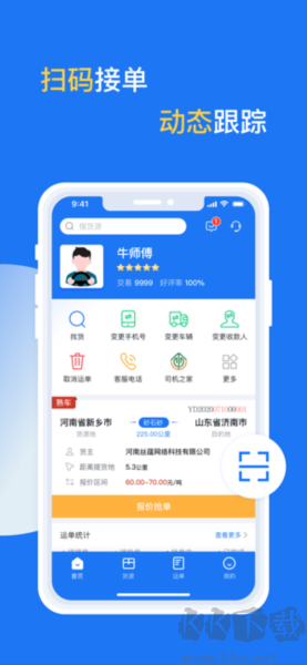 司机端支持扫码便捷接单,操作简单直观;同时实时跟踪运单全流程状态,从接单到完成运输的各项节点信息清晰可查,保障运输环节透明可控。