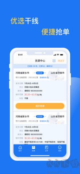 3、进入货源,可进行查看以及相应的报价和抢单。