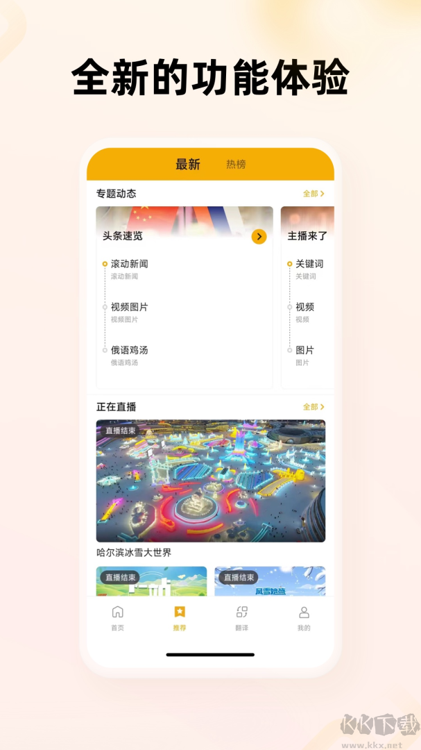 中俄头条app是一款由中国中央广播电视总台与今日俄罗斯国际通讯社共同打造的中俄双语移动融媒体平台,为用户提供丰富多样的新闻资讯。平台整合两国主流媒体资源,使用户既能及时掌握中国国内新闻,也能获取俄罗斯的时事动态。其特有的双语支持功能,使信息呈现对中俄两国用户都十分便利。除图文资讯外,中俄头条还提供视频直播、在线翻译等多种服务,满足不同用户的使用需求。平台为中俄两国深化理解与合作提供便利途径,助力增进两国人民之间的交流与友谊。