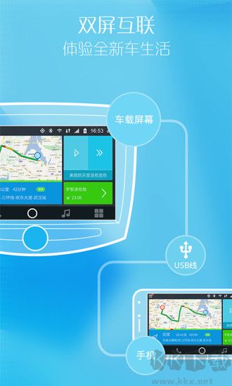2、用USB线连接手机和车机,完成连接后即可开始互联;