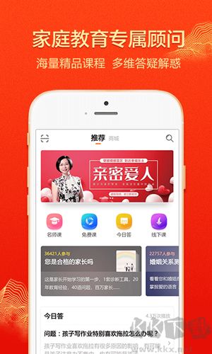 专家导师每日更新问答内容,针对家庭教育、亲子沟通、自我提升等高频疑惑,提供专业且实用的解决方案。利用碎片化时间就能化解困惑,逐步构建属于自己的家庭成长知识体系。