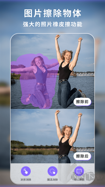 高级擦除功能,涂抹一次即可清除闲杂人物或画面里不需要的杂物。