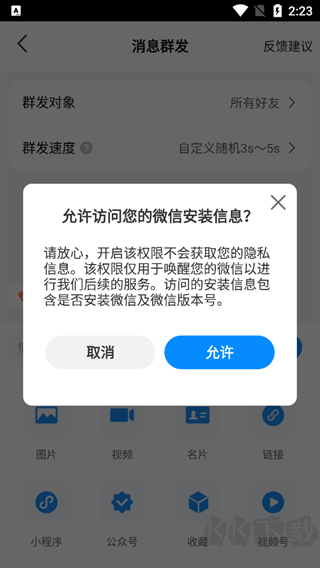 2、群发时自动在消息前插入每位好友的专属称呼,实现个性化推送,支持批量添加多位好友,高效又贴心;