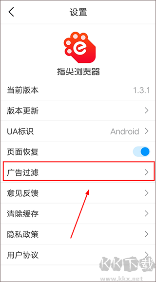 4、在【广告过滤】页面,点击开关进行设置即可。