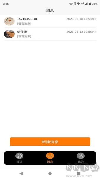 3、点击底部“消息”按钮后可查看收到的语音消息内容,并可通过“新建消息”按钮发送新的卫星语音信息。