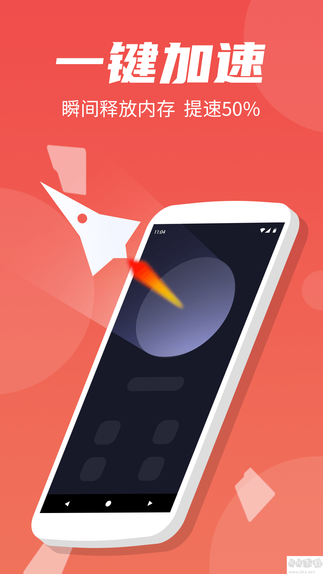 3、向用户推送一键加速功能,使用后能提升手机的运行速度;
