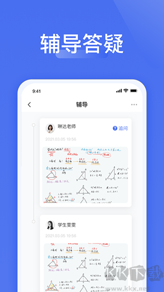拍照上传题目,辅导老师在线解答疑问并批改作业。
