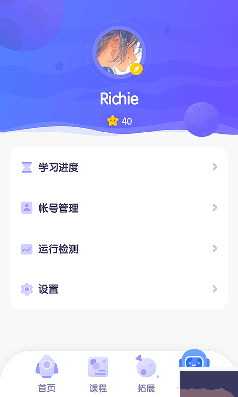 6、个人中心就是对自己的账号及孩子的学习情况的一些进度管理。