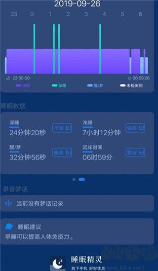 1、睡眠精灵APP详细记录您的睡眠质量,并给出具体建议以改善您的睡眠情况。