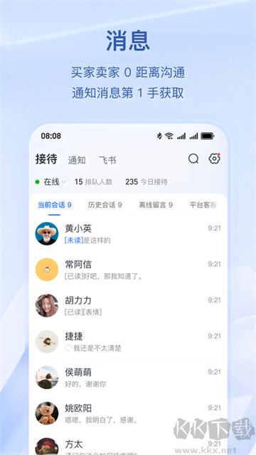 2、【即时通讯消息】及时与客户交流,不漏过买家咨询、下单转化的商业机会;