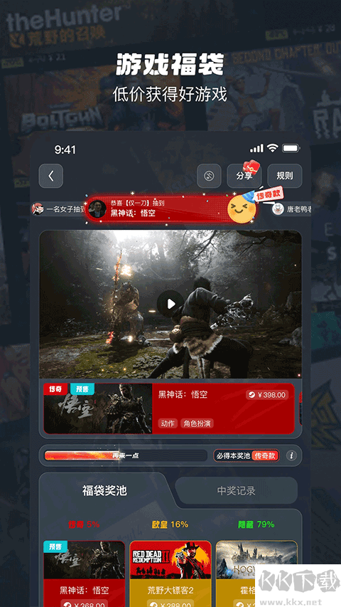 2、以极低成本随机获得高品质大作,奖池每周更新,并设有保底机制,无需担心始终无法获得。