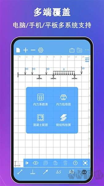 3.专属工程模块:提供内力包络图绘制、内力系数表生成、混凝土配筋计算等实用功能,适配工程设计场景。