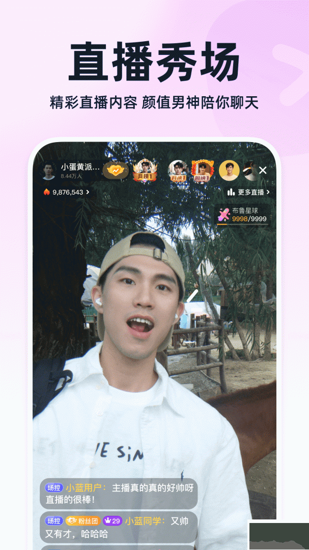 4、汇聚高关注度主播,实时展示直播间热度与榜单排名,用户可进入直播间交流、发送评论,与主播实时互动。