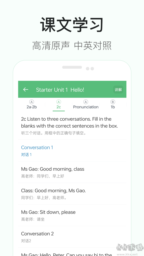 1、涵盖七年级至九年级全部单词及课文(附同步译文),均配有高清真人发音,支持跟读与点读功能。