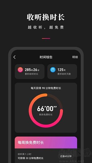 6、收听积累时长,收听时间越长便有机会享受更多免费服务。