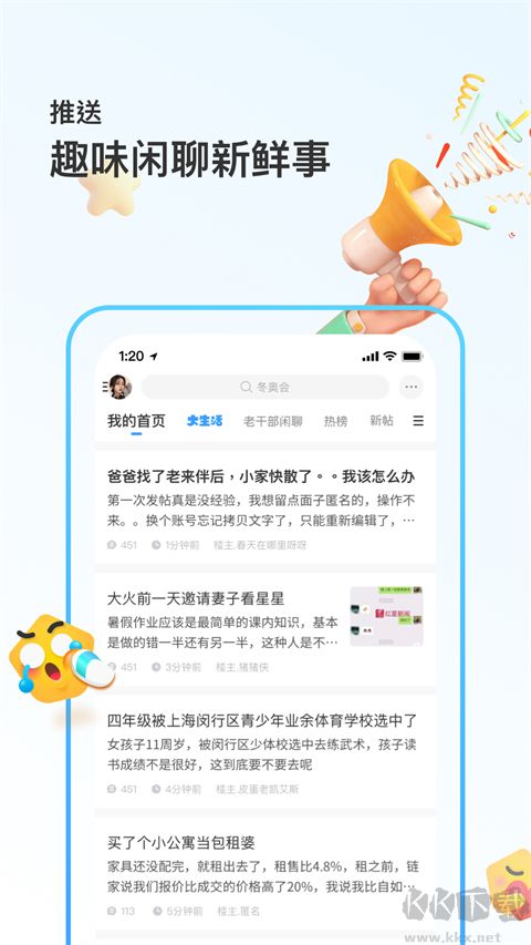 在设备上可以将喜欢的讨论保存下来,并与网站保持同步。