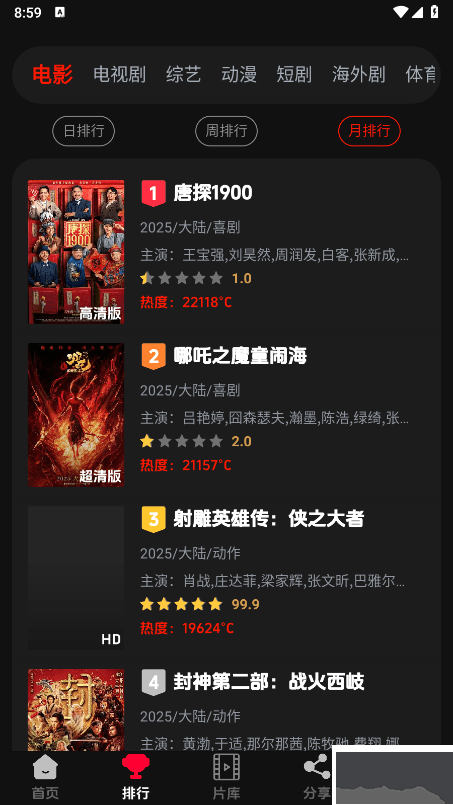 5、【多样类别】拥有极其多样的影片类别,总能找到你偏爱的那一类;