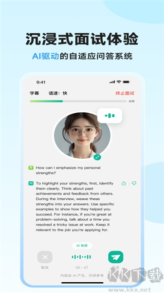 4.自由对话无限练习空间:针对面试相关的任意问题,均可随时随地与系统对话交流,打破时间与场景限制,让面试练习、疑问解答触手可及,持续积累应试经验。