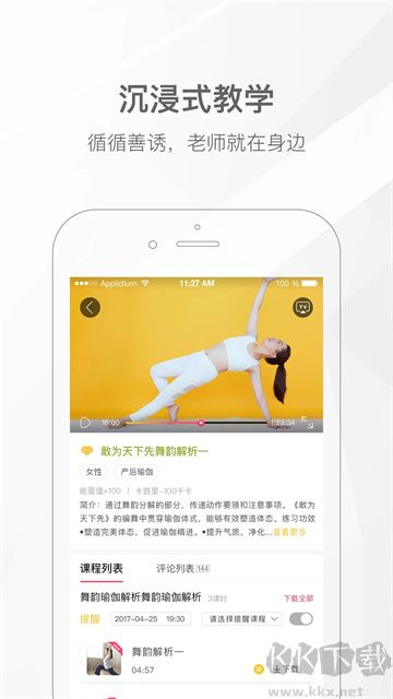 2、精选练习方案:减脂计划、腹部线条练习、身形修饰瑜伽、生理期瑜伽、动作解析、产后恢复瑜伽、舞蹈韵律瑜伽、肩颈舒缓瑜伽、脊柱活化瑜伽。