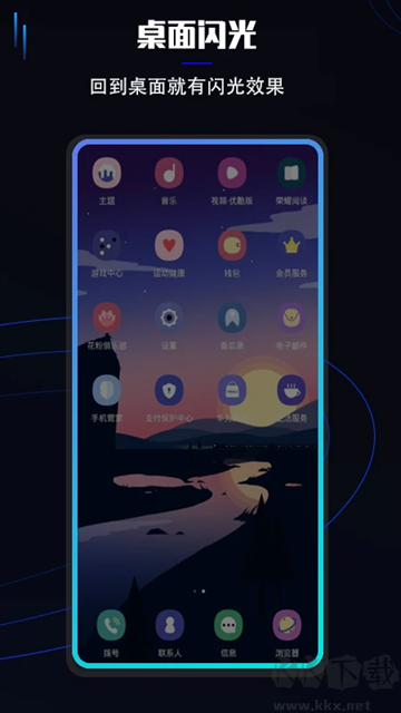 返回主屏幕时自动展现边框辉光,样式可依个人偏好设定。