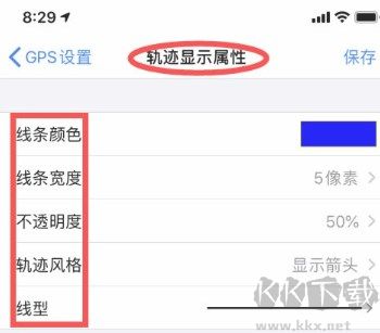 4、在GPS设置页面打开设置轨迹属性,可以设置记录轨迹的线条颜色线型等属性。