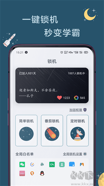 远离手机app是一款可以控制手机的应用,能暂时屏蔽视频、游戏及各类网页,仅保留通话、短信等基础通信,选择需限制的程序并设定时限,确认后即刻生效,选定程序无法使用,直至计时结束,这个过程帮你营造专注空间,慢慢培养注意力的习惯。