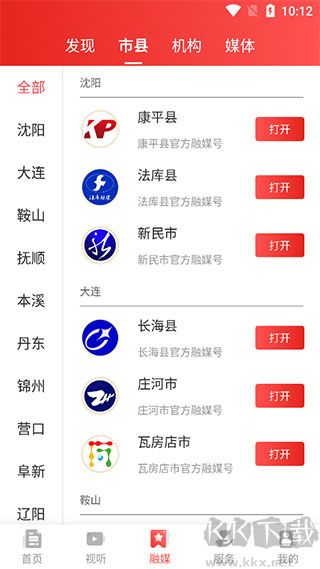 可以看到各种资讯和辽宁各个地方的融媒号、机构和媒体等。